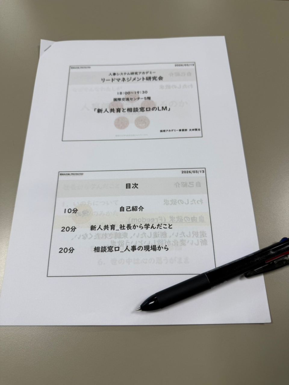 人と向き合う姿勢、心構え、心の寄り添い方などリードマネジメントの極意を教わった研究会でした。